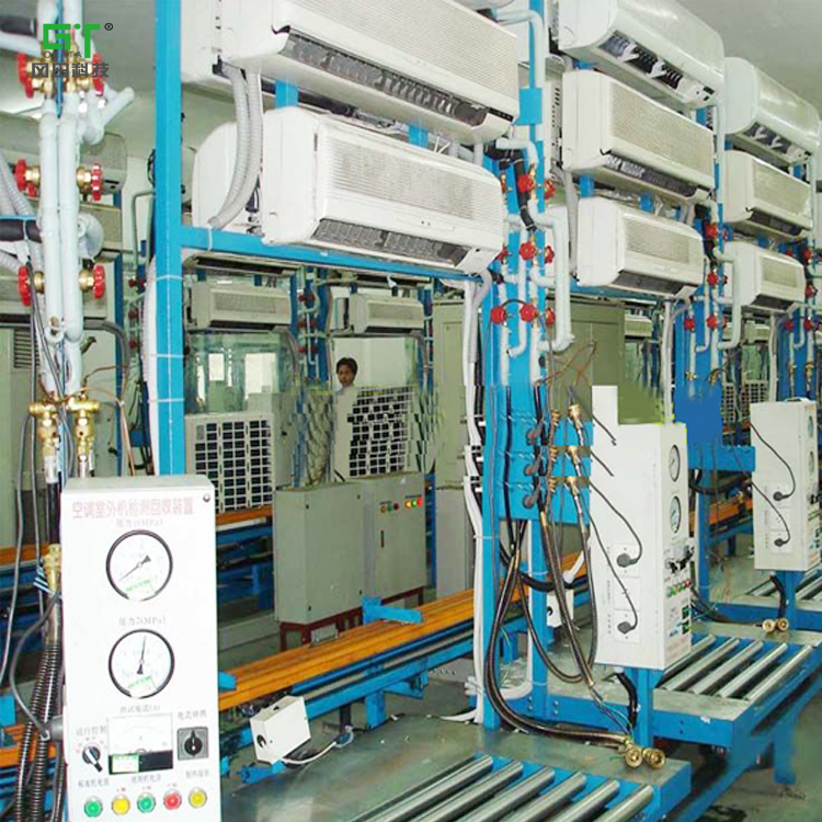 空調檢測線:用于各種空調器室內、外機各性能參數的檢驗,整個系統具有穩定可靠,精度高,操