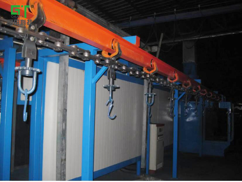 掛流水線的種類一般按產品功能定,有XJG型懸掛線、自動懸掛線、噴涂線、掛鉤懸掛線等流水線。特點:吊籃式輸送、變頻調速設置、鏈條傳動式設備、自動化程度高。