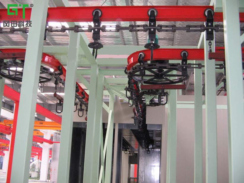物料懸掛流水線能隨意轉彎、爬升,能適應各種地理環境條件。